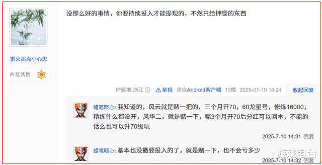 那么,你对于《逆水寒》的合伙人计划是怎么看的呢?花2000块买的号预计分红575元这件事,你觉得靠谱吗?说说你的想法吧。