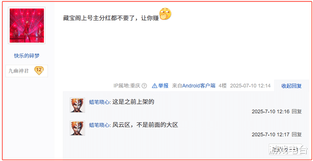 有玩家则懊悔,自己之前看到号价涨了,就把自己的账号给上架了。现在才发现原来一个月能分这么多,自己后悔也晚了。